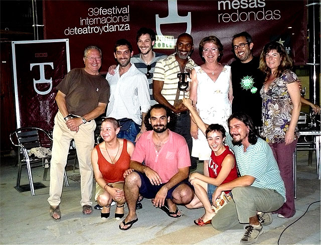 La entrega del Premio, una reproducción del símbolo del 39 Festival, que dibuja una máscara con la T de teatro y D de danza, se realizó tras la mesa redonda en la que participaron todos los actores y el público asistente, celebrada en la plaza de España de San Javier.