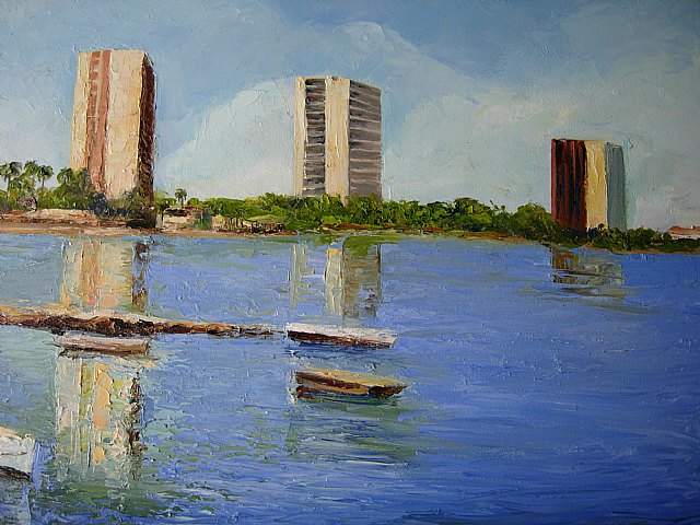 Juan Isidro Alcántara afincado en Cartagena desde 2004 exhibe una amplia gama de azules y verdes que utilizan principalmente en paisajes, y en tonos cálidos utilizados en otra etapa con los que ilumina sus bodegones, paisajes, y la figura humana que también constituye objeto de atención del autor que se graduó como pintor y escultor en la Escuela Nacional de Bellas Artes de Santo Domingo. En su país primero y ahora en Cartagena ejerce de profesor de dibujo y pintura, mientras sigue trabajando en su propia carrera a la que suma otra exposición, desde que empecerá a mostrar sus trabajos en Santo Domingo.