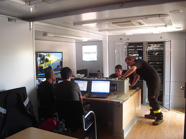 El Puesto de Mando Avanzado, que fue donado por la Obra Social de La Caixa a la Comunidad Autónoma de la Región de Murcia, y que ya se encargó de coordinar el dispositivo de emergencias para la semifinal de la Copa Davis de tenis en Torre Pacheco, dispone de una superficie útil de 30 metros cuadrados divididos en dos salas. Cuenta con los más modernos sistemas de comunicaciones como emisoras de radio, cinco líneas de teléfono, satélite, y un sistema audiovisual que dispone de señales de televisión terrestre y satélite, entre otros.