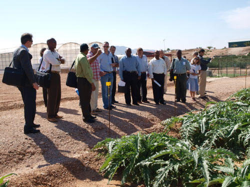 Miembros de la delegación extranjera comprueban los ensayos sobre cultivos hortícolas realizados en las parcelas de "El Mirador"