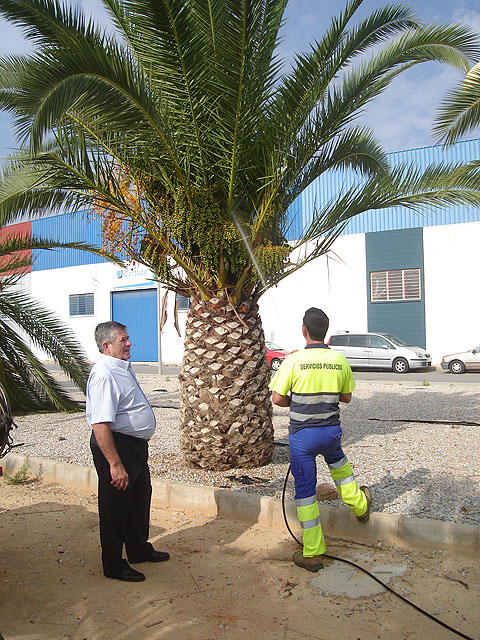 La concejalía de Parques y Jardines ha iniciado un nuevo tratamiento contra el picudo rojo que de forma experimental ha comenzado por el parque de Los Urreas, en San Javier. El concejal de Parques y Jardines, Antonio Garcerán ha explicado que se trata de un “sistema biológico, alternativo a los insecticidas químicos que viene avalado por su eficacia contra el picudo”.