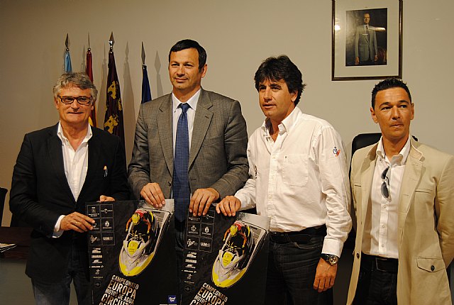 El Campeonato que se completa con otras dos citas en Portugal e Italia, lo han presentado esta mañana en el ayuntamiento de San Javier por el director general de Deportes, Antonio Peñalver, los presidentes de las federaciones de motonáutica de la Región de Murcia y de España, Dionisio Baño y José Miguel Martínez, respectivamente, y el concejal de Deportes de San Javier, José Ángel Noguera que se mostrado encantado de “acoger en nuestro municipio un campeonato europeo de estas características”.