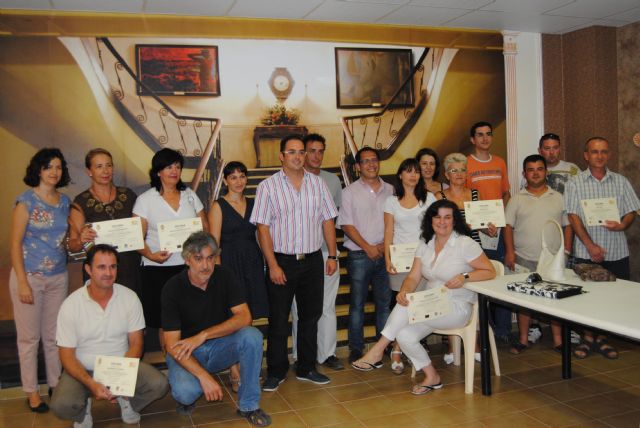Los 24 alumnos que han completado los cursos de decoración y proyección de interiores, y de iniciación a la fotografía digital convocados por la Agencia de Desarrollo Local de San Javier recibieron esta mañana sus diplomas que les entregaron los ediles de Comercio y Empleo, Pedro López; y de Cultura y centros cívicos, Inmaculada García.