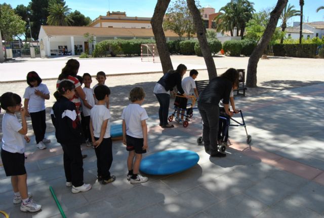 Los alumnos de 1° y 2° de Educación Primaria del colegio "Sagrado Corazón de Jesús", de San Javier, aprendieron nociones básicas del lenguaje de signos, a diferenciar monedas por el tacto, o a caminar con la ayuda de un andador, en la jornada de sensibilización "Conoce mi discapacidad. Ponte en mi lugar" que se celebró ayer en el citado colegio, organizada por la comisión de integración social del Consejo de Igualdad del Ayuntamiento de San Javier.