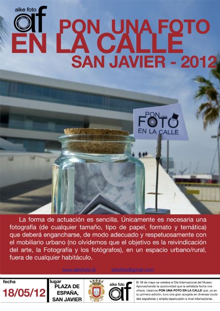 El próximo 18 de mayo se celebra en la plaza de España de San Javier la iniciativa Pon una Foto en la Calle (PFC) organizada por el colectivo Aike Foto con la colaboración de la concejalía de Cultura del Ayuntamiento de San Javier.