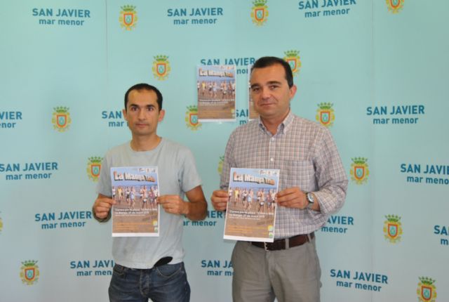 El concejal de Deportes, Carlos Albaladejo y el presidente del club Wapaventura, Christophe Roche presentaron esta mañana el II La Manga Trail, la carrera que se disputará el próximo domingo 27 de mayor en La Manga del Mar Menor y que transcurre íntegramente por la arena de la playa.