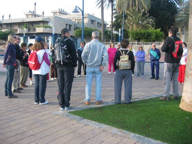Un grupo de 30 personas de hasta 70 años de edad participó el pasado fin de semana en el taller de senderismo del Banco del Tiempo que en esta ocasión consistió en una salida urbana con un recorrido entre Santiago de la Ribera y San Javier visitando distintos puntos de interés.