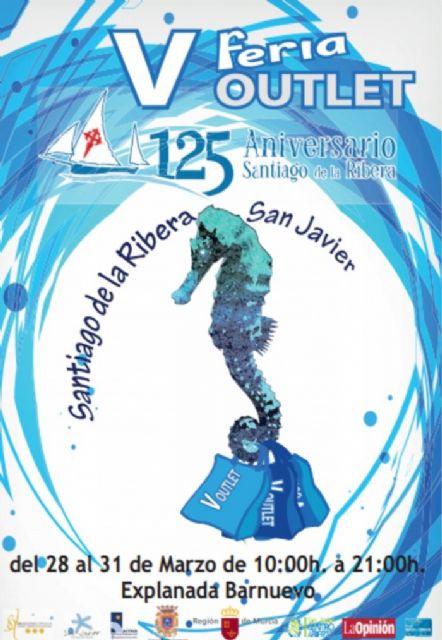 La V Feria Outlet de Santiago de la Ribera, que este año rinde homenaje al 125 Aniversario de la localidad, abrirá sus puertas, el próximo Jueves 28 de marzo y durante todo el puente de Semana Santa hasta 31 de marzo, de diez de la mañana a nueve de la noche, en la explanada Barnuevo con 52 casetas, 6 más que el pasado año.