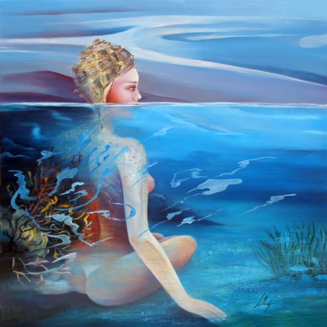 La artista refleja la ingravidez submarina, sensaciones y recuerdos de paseos bajo el mar, dejando que lo figurativo escape de la realidad y el paisaje se transforme en algo diferente.