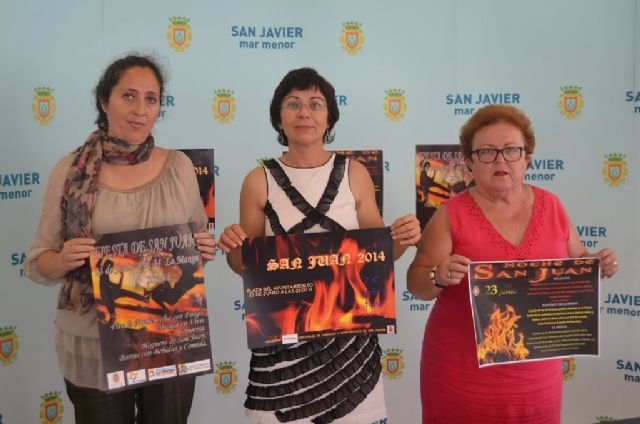 La concejala de Festejos, Gloria Cuenca, la alcaldesa pedánea de Santiago de la Ribera, Julia Gallut y la presidenta de la Asociación de Vecinos de La Manga, Marisina Aznar presentaron esta mañana las distintas celebraciones de San Juan en el municipio que en La Grajuela se adelantan a la noche del sábado 21 de junio, mientras que en el resto serán la noche del 23 de junio.