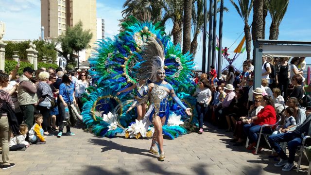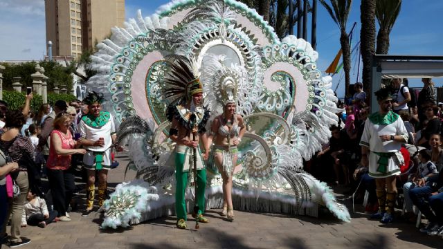 Miles de personas presenciaron esta mañana la llegada de la Sardina a Santiago de la Ribera en un caluroso recibimiento al que sumaron las comparsas de carnaval locales que llenaron de color y fiesta el paseo Colón con un espectacular desfile.