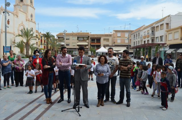 El alcalde José Miguel Luengo, acompañado por el concejal de Medio Ambiente, Antonio Luengo y varios miembros de la Corporación expresó hoy el compromiso municipal con la normativa existente sobre el ruido en el manifiesto que leyó en la plaza de España con motivo de la celebración del Día Internacional de Concienciación sobre el Ruido 2016.