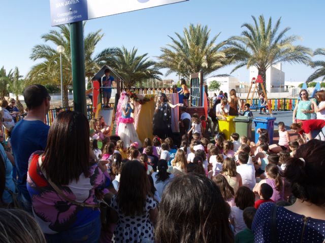 Lleno absoluto en la última cita de la campaña "En tu parque o en el mío" de la concejalía de Parques y Jardines que se celebró en la tarde del pasado viernes, en la parque Islas Canarias, de San Javier, en colaboración con la concejalía de Medio Ambiente, para festejar con los más pequeños el Día Mundial del Medio Ambiente. Teatro y actividades como el Juego de la Oca de la campaña "Pásalo a Limpio" del servicio de recogida de basuras y limpieza del municipio que patrocina la empresa FCC , y que la concejalía de Servicios Múltiples ha llevado a los colegios durante el curso, llenaron una tarde juegos que como es habitual incluyó una merienda para los niños en una perfecta tarde de parque.