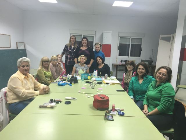 La voluntaria Pepa Pastor ofreció el taller de automaquillaje al que asistieron 13 personas que aprendieron a mejorar el cuidado de su piel y cómo sacar más partido al maquillaje en casa. Otros nueva personas escogieron el taller impartido por Mónica Cristina de Faria en el que se aprendía a elaborar objetos decorativos con materiales desechados.