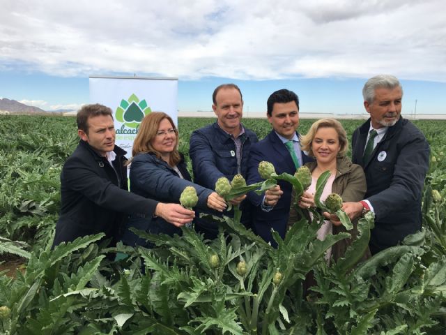 El alcalde de San Javier, José Miguel Luengo y el presidente nacional de la asociación Alcachofa de España, Antonio Galindo acompañaron a la consejera a la hora de proceder al corte simbólico de la hortaliza en un campo de producción del municipio, en un acto en el que también participaron los alcaldes de la comarca del Campo de Cartagena, donde se cultiva el 40% de la producción regional, así como representantes de los sectores de la producción, de la conserva y del congelado.