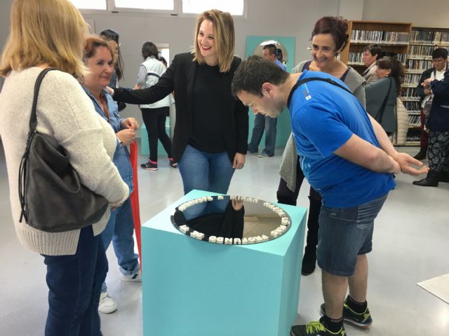 La instalación, que se puede visitar en la biblioteca de San Javier, fue inaugurada esta mañana por la concejala de Juventud, Estíbaliz Masegosa, y su director artístico, Alberto Martínez y un numeroso grupo del Centro de Día para personas con enfermedad mental que Ápices tiene en Cartagena. Masegosa recordó la importancia que para el festival tiene la integración a través del arte y el ejemplo que en este sentido ofrece Ápices que participa en Imagina por sexto año consecutivo.