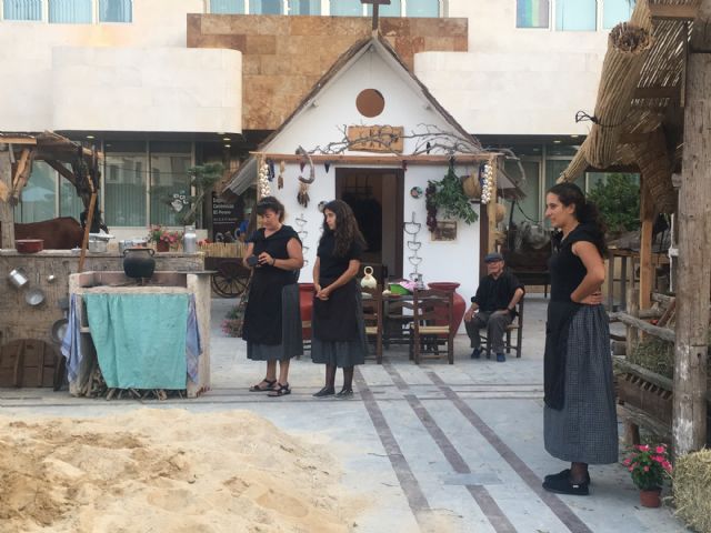 El recinto etnográfico que cuenta con una barraca típica amueblada, una huerta, carretas, una ceña para sacar agua, enseres, utillaje, y hasta una familia ataviada que cocina en su horno moruno seguirá abierto al público estos días para mostrar cómo se vivía en la huerta murciana desde el siglo XVIII hasta el siglo XX.