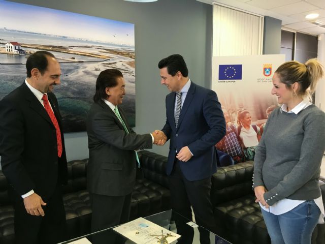 El alcalde de San Javier José Miguel Luengo y la concejala de Deportes Estíbaliz Masegosa recibieron hoy en el Ayuntamiento a Phap Lu, considerado una eminencia mundial del Taekwon-Do I.T.F. con motivo de su participación en un Seminario Internacional de Taekwon-Do que se impartirá en el pabellón "María Teresa López", del IES "Ruiz de Alda", durante el fin de semana con presencia de deportistas de toda España y siete países como Inglaterra, Argentina, Ucrania, Canadá y Croacia, entre otros.