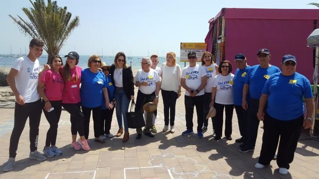 La consejera de Familia e Igualdad de Oportunidades, Violante Tomás, asistió hoy a la jornada intergeneracional entre usuarios del centro social de mayores de SanJaviery jóvenes del IES Mar Menor.