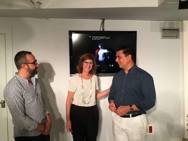El alcalde de San Javier, José Miguel Luengo, la directora general del Instituto para las Industrias Culturales y las Artes, Marta López-Briones y el director del Festival y concejal de Cultura, David Martínez presentaron hoy en la sede de la consejería de Cultura, en Murcia, el inicio del Festival que arranca con tres de los espectáculos del programa vendidos casi al completo, un incremento en el número de abonados que pasa de 150 a 200 y unas previsiones de 20.000 espectadores, tres mil más que en la pasada edición, según apuntó el alcalde.