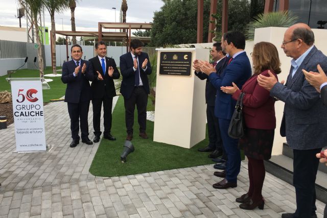 Allí se han trasladado más de 250 empleados, los cuales han participado en un acto de inauguración, que abre el 50 aniversario de la compañía, y que ha contado con la presencia, entre otros, del presidente del Gobierno regional, Fernando López Miras, del consejero de Empleo, Universidades, Empresa y Medio Ambiente, Javier Celdrán, y de los alcaldes de San Javier, José Miguel Luengo, San Pedro del Pinatar, Visitación Martínez, Pilar de la Horadada, Ignacio Ramos. Junto a ellos, han estado David, Jaime y José María Martínez Miralles, máximos responsables de Grupo Caliche.