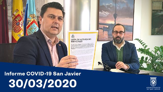 El alcalde de San Javier confirmó la muerte por coronavirus de un hombre de 70 años residente en Santiago de la Ribera que se encontraba ingresado en el hospital Los Arcos, como primer fallecido del municipio. José Miguel Luengo trasmitió sus condolencias a la familia y recordó la importancia tanto a sus familiares como a cualquier persona que haya estado en contacto con un positivo que guarde la cuarentena en casa. Luengo recordó que las infracciones recogidas en el nuevo Real Decreto contra la Salud Pública contemplan sanciones que van desde los 3000 a los 600.000 euros , incluida la detención y reiteró que tanto Policía Local como Guardia Civil y ahora también el Ejército velarán en las calles del municipio por el cumplimiento de las medidas de aislamiento .