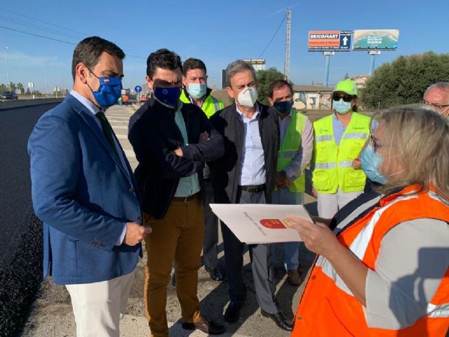 El consejero Díez de Revenga y el alcalde José Miguel Luengo visitan las obras de reasfaltado de la autovía del Mar Menor