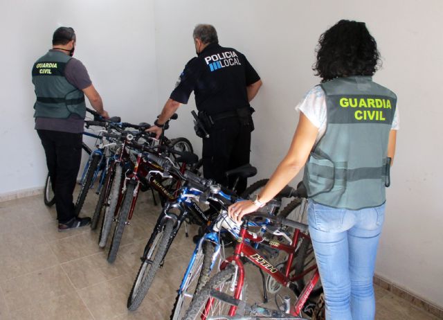 La Guardia Civil de la Región de Murcia, en colaboración con la Policía Local de San Javier, ha desarrollado desde el pasado mes de junio la operación 'Bikeo', una investigación dirigida a esclarecer numerosos robos de bicicletas, cometidos en viviendas del municipio de San Javier, que ha culminado con la desarticulación de un grupo criminal, cuyos ocho miembros han sido detenidos como presuntos autores de los delitos de hurto (20), robo con fuerza (10) y desobediencia a agentes de la autoridad.