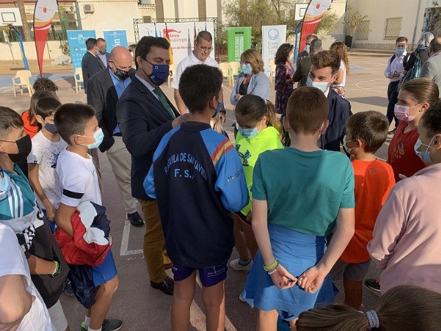 La consejera de Educación y Cultura, María Isabel Campuzano y el director general de Deportes, Francisco Sánchez, se desplazaron esta mañana hasta el colegio “Ntra.Sra. Virgen de Loreto”, para presentar al alumnado y profesores el proyecto en un acto que también contó con la presencia del alcalde, José Miguel Luengo, que manifestó el apoyo municipal al proyecto, y los concejales de Educación, David Martínez y Deportes, Sergio Martínez.
