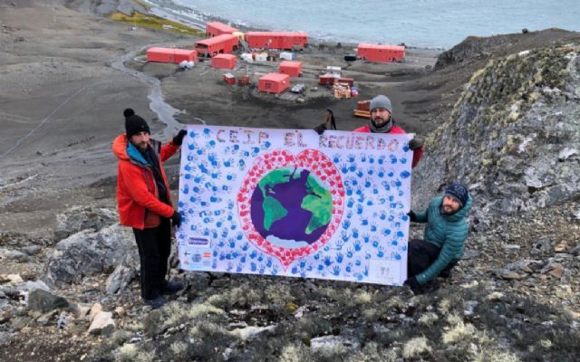 El CEIP El Recuerdo, de San Javier, lleva su bandera a la Antártida