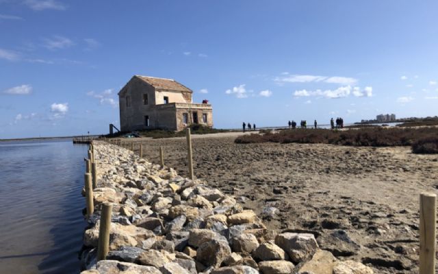El consejero Antonio Luengo realizó estas declaraciones, acompañado por el alcalde de San Javier, José Miguel Luengo, durante una visita a la Encañizada, ubicada en término de San Javier, al norte del Mar Menor. Ambos pudieron comprobar las actuaciones que se han realizado en la primera fase de las obras, ya concluida, y que consisten en la habilitación del acceso al islote y la construcción de un murete de mampostería y el pantalán. Una vez que se reanuden los trabajos, a partir de septiembre, se llevará a cabo la recuperación del calado de las zonas de paso de peces y la colocación del arte de pesca formado por cañas.