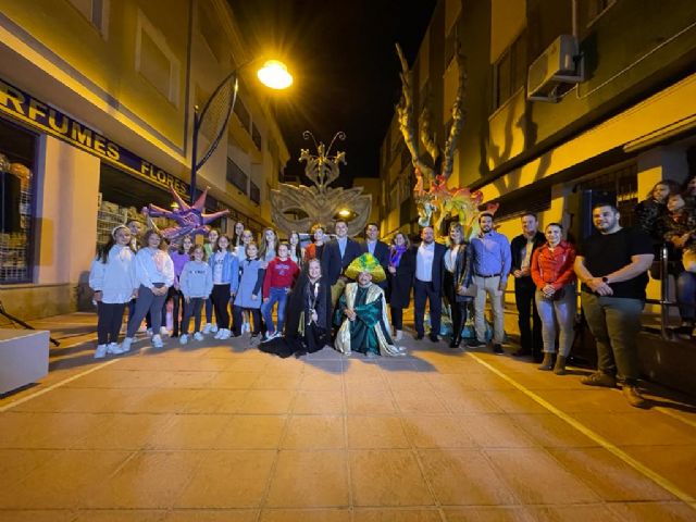 El alcalde de San Javier, José Miguel Luengo acompañado por el concejal de Fiestas, Isidoro Miñano inauguró la escultura con la que el Ayuntamiento de San Javier quieren rendir homenaje “Al Carnaval de Santiago de la Ribera”, como reza en el monumento ubicado en la calle peatonal, Pintor Clemente, ubicada en el centro de la localidad.