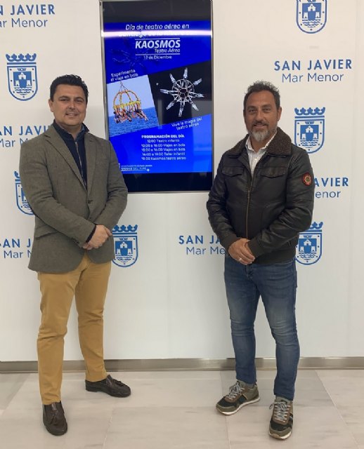 El teatro aéreo vuelve a los cielos de San Javier, en este caso a los de Santiago de la Ribera, donde el sábado 17 de diciembre, en una jornada pre navideña, se celebrará un día lleno de actividades en el que habrá teatro infantil, “viajes en bola” de hasta 40 metros de altura, talleres de temática aeronáutica y un gran espectáculo aéreo con el Grupo Puja!. La compañía con más 20 años de experiencia internacional en espectáculos aéreos de gran formato, presentará su espectáculo “Kaosmos”, que da título a toda la jornada organizada al amparo del proyecto “San Javier, ciudad del aire”.
