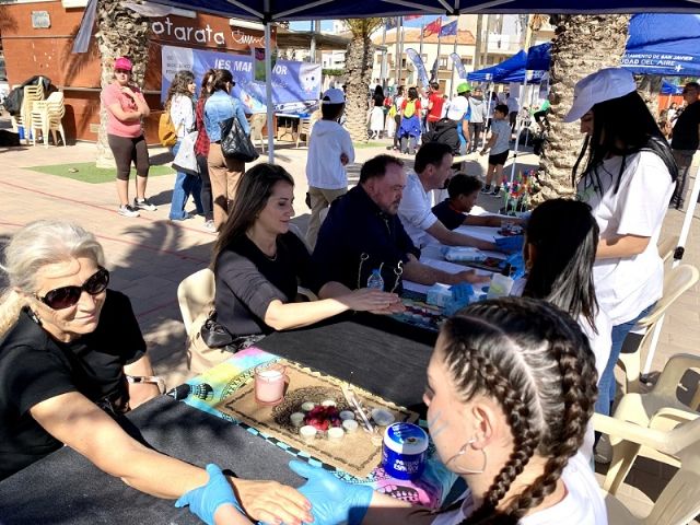 La concejala de Derechos Sociales, Estíbaliz Masegosa y los concejales de Salud, Isidoro Miñano y de Deportes, Sergio Martínez, han visitado esta mañana la actividad que se ha desarrollado con unos 500 niños de 9 a 13 años en la explanada Barnuevo de Santiago de la Ribera. El resto lo harán mañana jueves en las instalaciones del polideportivo municipal, en San Javier. Durante su visita han conocido el circuito de actividades deportivas guiadas, por el que iban pasando los alumnos, así como los diferentes stands.
