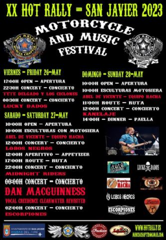 La explanada Barnuevo será el punto de encuentro del Hot Rally, que celebra su veinte edición, y que se caracteriza por un destacado programa musical que incluye el concierto de Dan McGuinness, el cantante de la Creedence Clearwater Revisited, que actuará en la noche del sábado.