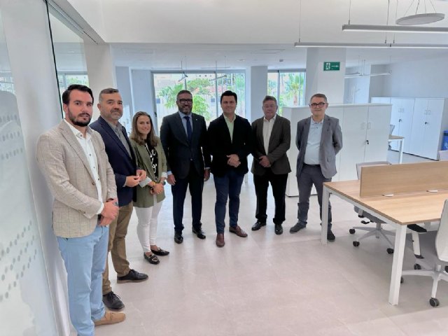 Tras la firma del convenio, el alcalde, José Miguel Luengo y el presidente de la Cámara de Comercio de Murcia, Miguel López Abad, acompañados por el concejal de Hacienda, Desarrollo Local y Proyectos Estratégicos, Héctor Verdú, la concejala de Comercio, Isabel Madrid y el diputado de San Javier, Carlos Albaladejo, visitaron las instalaciones donde se ubicará la oficina de la Cámara, en el Centro de Negocios, que ya alberga a la Agencia de Desarrollo Local, ACTIVA.