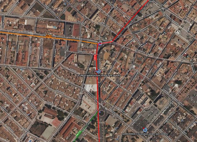 Servicios sanitarios de emergencia atienden y trasladan a un ciclista en accidente de tráfico, al ser atropellado por un turismo en la avenida de la Unión, en el término municipal de San Javier.