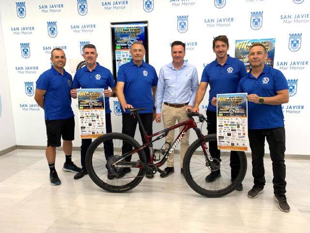 El concejal de Deportes, Sergio Martínez ha acompañado hoy a los integrantes del Club MTB San Javier durante la presentación de la XIII edición de la Vuelta al Mar Menor Calblanque que se celebrará el domingo 30 de junio. El evento, que se ha convertido en un clásico del calendario deportivo en San Javier, reúne a los amantes de la mountain bike que ya han completado las 100 inscripciones disponibles con participantes que llegan no solo del municipio sino de distintos puntos de la Región, también de las comunidades valenciana, Castilla La Mancha y Madrid.