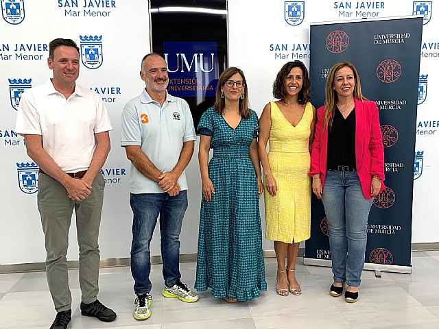 La concejala de Educación, María José Bernal, la vicerrectora de Formación Continua, Ana Vanesa Romero y el Secretario de la Facultad de Ciencias del Deporte, José Arturo Abraldes, presentaron hoy en San Javier los cursos que se celebrarán entre el 17 de junio y el 15 de noviembre, en un acto al que también asistieron la coordinadora de Extensión Universitaria, Cristina Sánchez y el concejal de Deporte, Sergio Martínez.