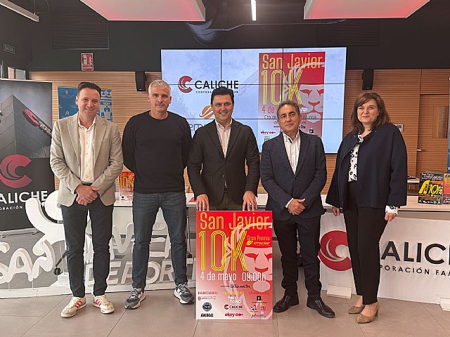 San Javier acoge el próximo domingo 4 de mayo la cuarta edición de la “Animal 10K Gran Premio Emsolar”, que un año más ha vuelto a superar su récord de participación con los 650 dorsales disponibles ya vendidos. La carrera, las más rápida de la Región, se ha presentado esta mañana en las instalaciones del Grupo Caliche, en San Javier, con la participación del presidente del club organizador, Track & Field, Juan Antonio Gatón, el alcalde de San Javier, José Miguel Luengo y Jaime Martínez, vicepresidente del Grupo Caliche, empresa patrocinadora de la carrera.