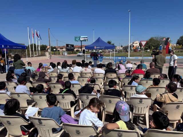 Tras una breve explicación del nombre y esculturas que dotan de significado la redonda, ubicada en el cruce de la Carretera de la Unión con avenida Neptuno, los niños han protagonizado distintas acciones y actuaciones temáticas relativas a la igualdad y contra la violencia de género.