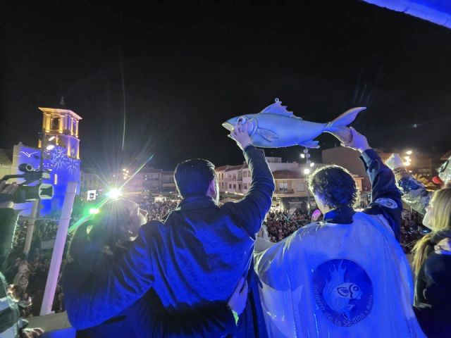 Todavía le quedaría el recorrido por tierra que hizo por la tarde con un espectacular desfile que acabo en la plaza de España, de San Javier. Allí fue recibida oficialmente por el alcalde, José Miguel Luengo y el presidente de la Agrupación Sardinera, Pablo Ruiz, que sellaron el compromiso de custodia de la Sardina hasta su entrega en Murcia para la quema del Entierro de la Sardina.